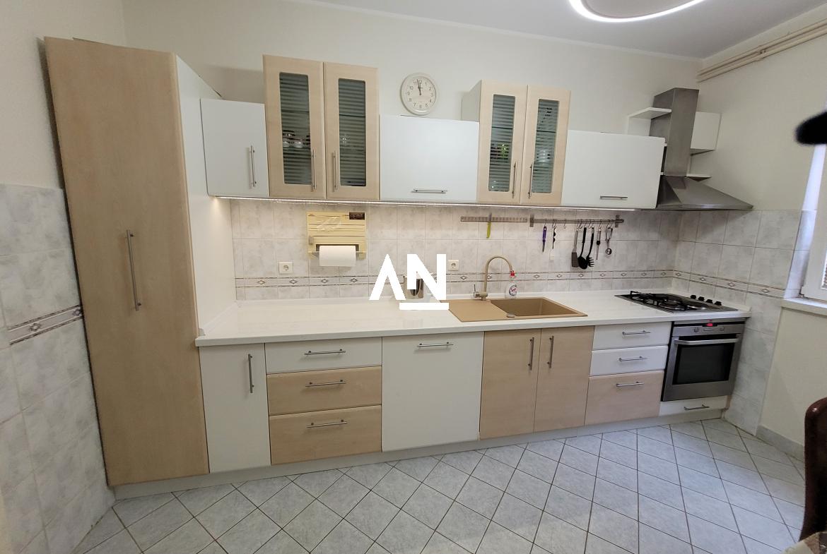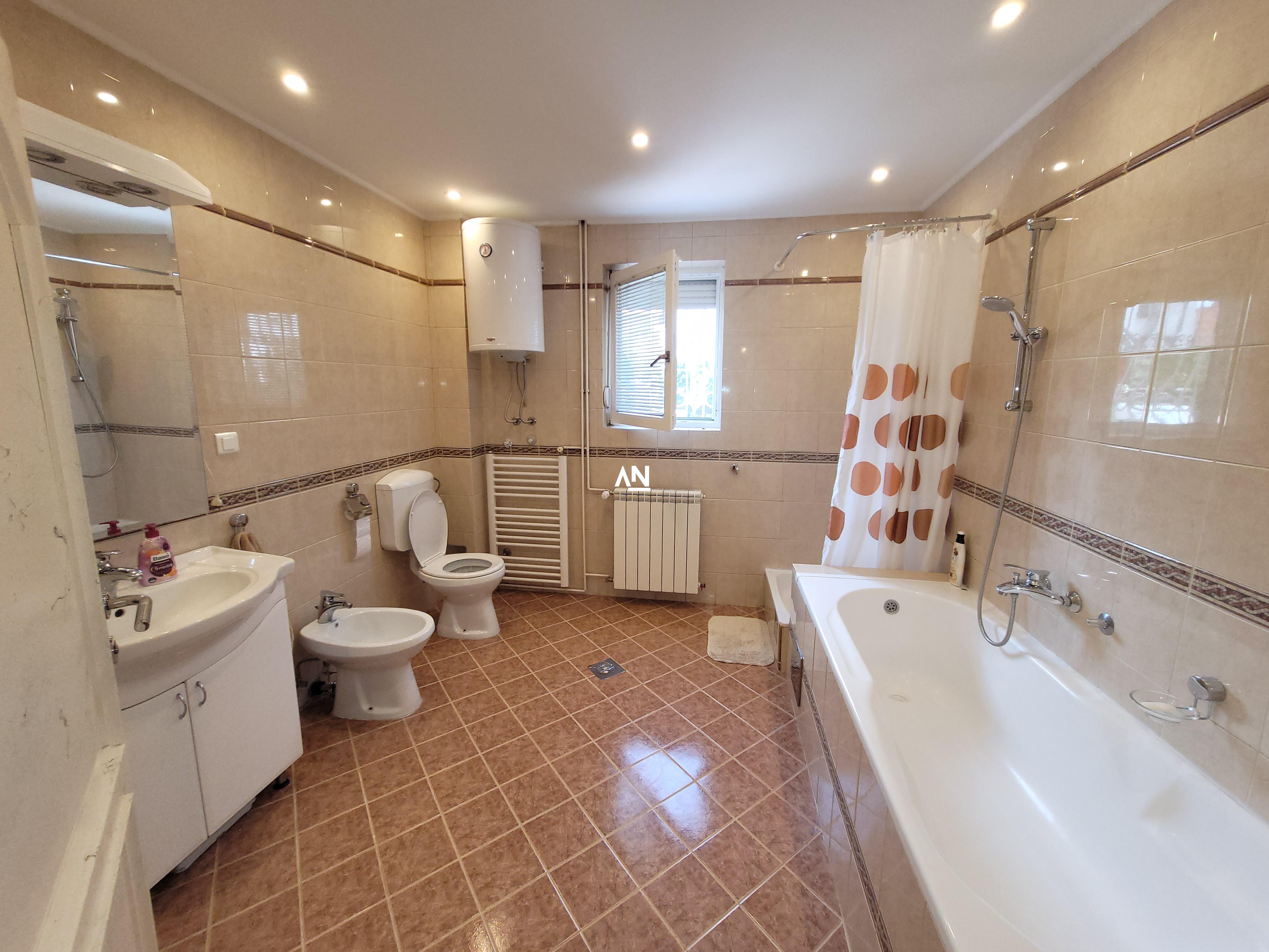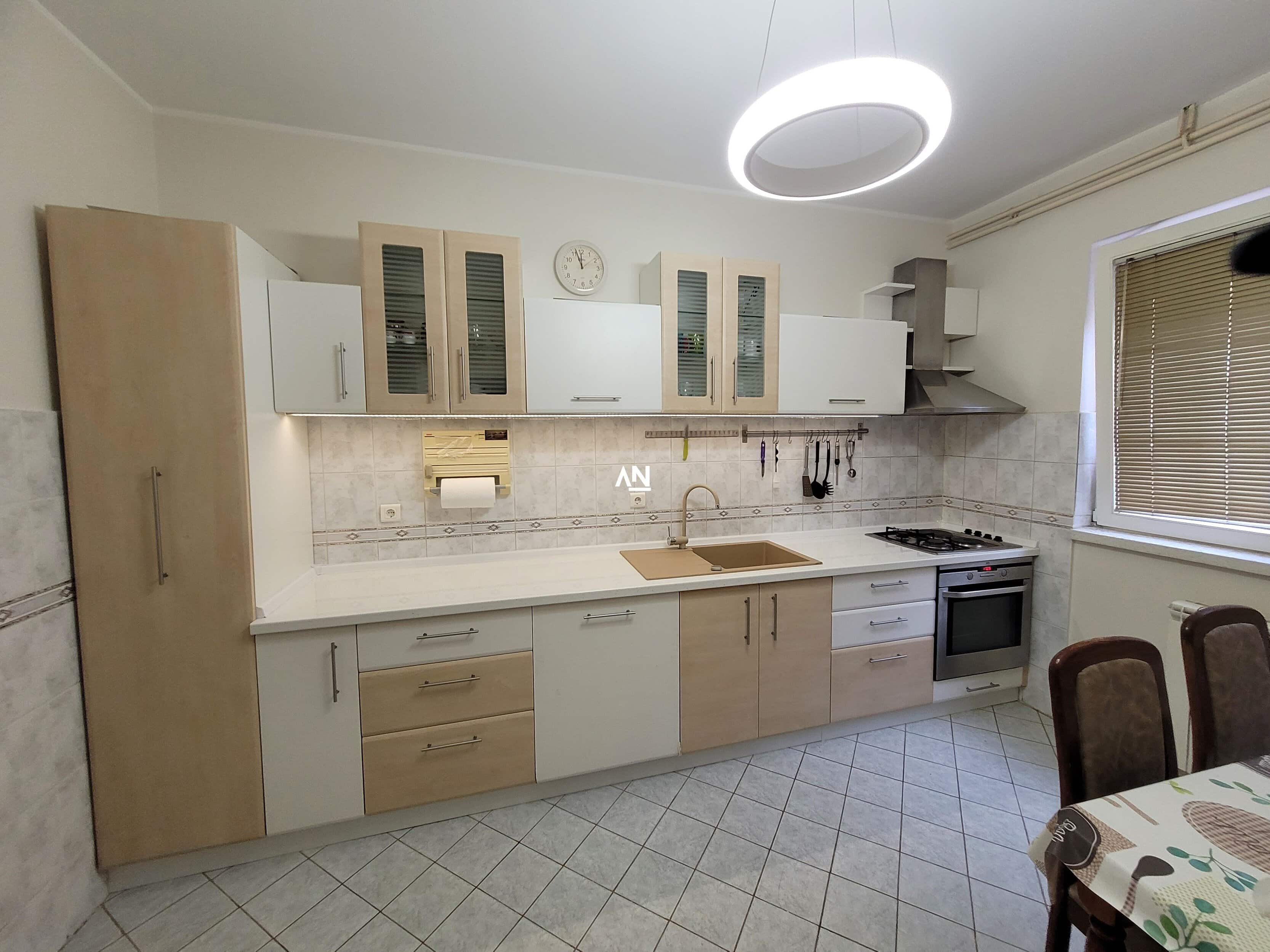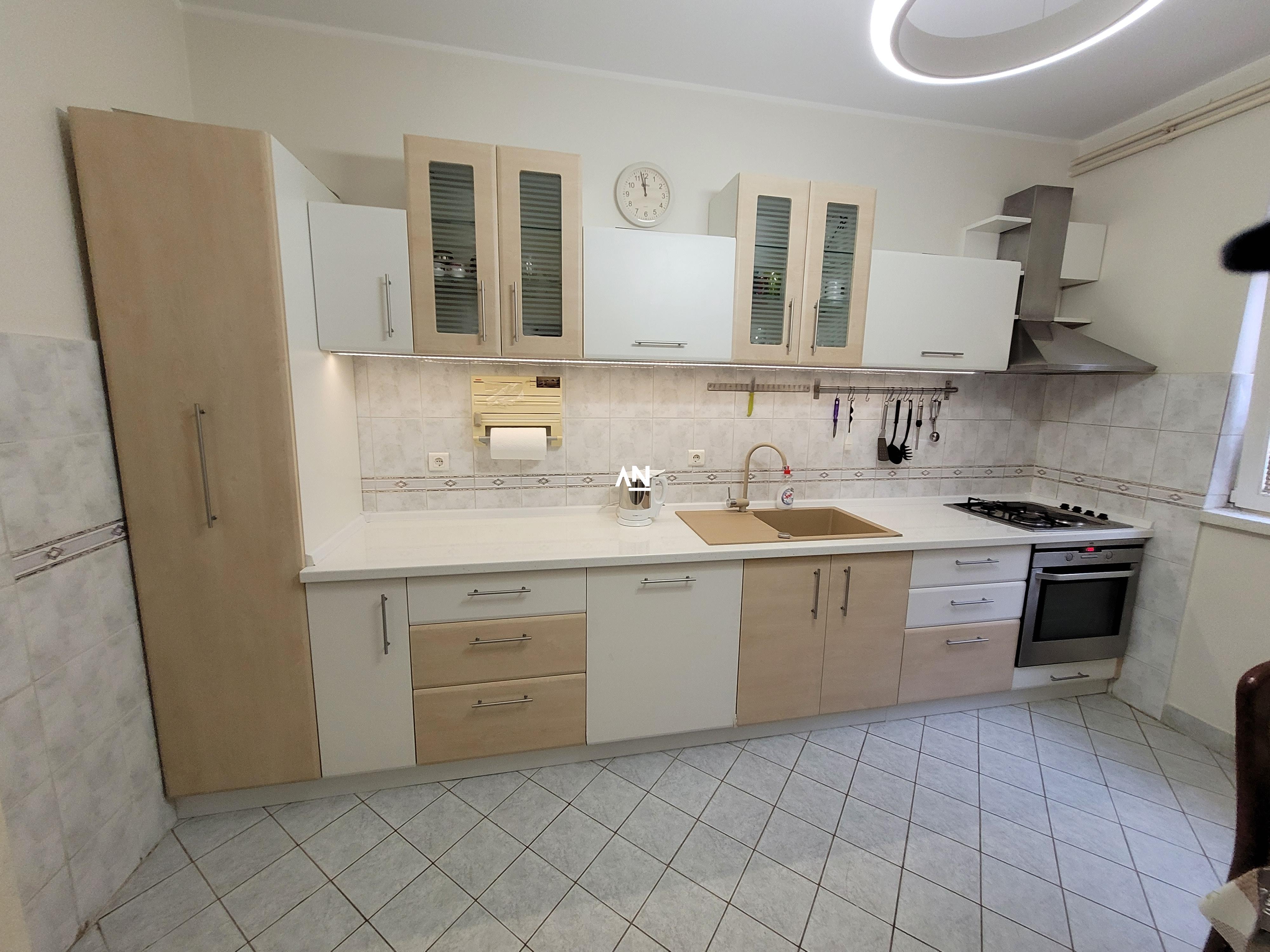 Sve prostorije su prostrane, sa visinom plafona od 2,8 m. Kuhinja je potpuno opremljena (nova radna ploča, velika sudopera, sudomašina, mikrotalasna).