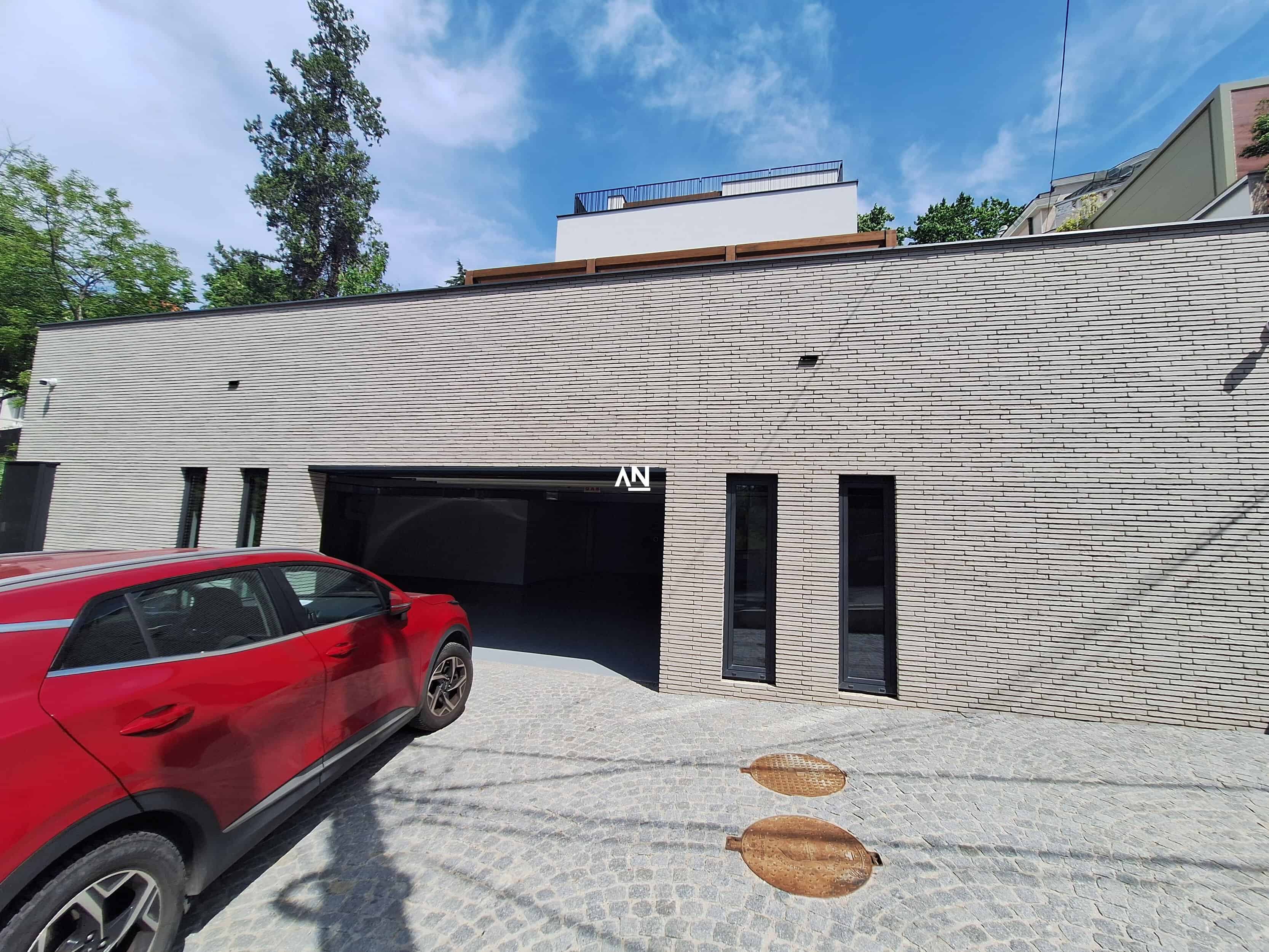 Svaka kuća poseduje dva garažna mesta, kao i dodatne ostave i podrumske prostorije.